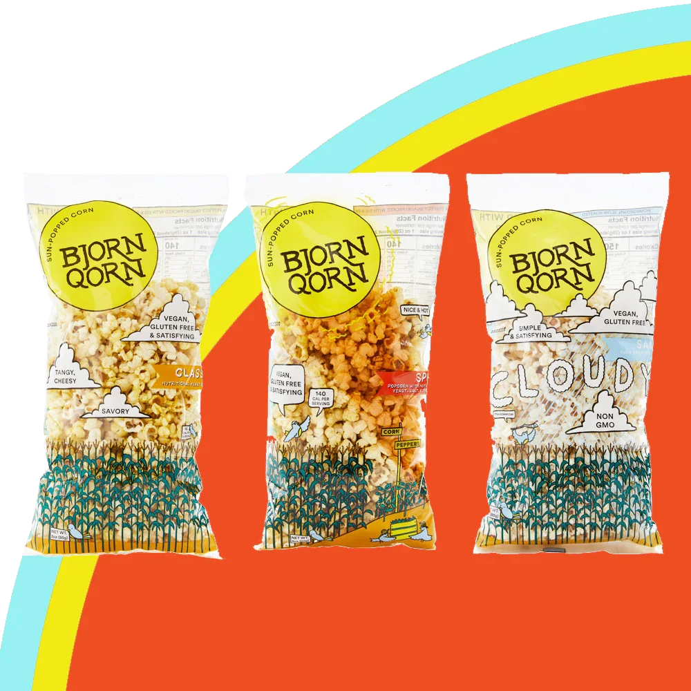 We use homegrown non-gmo popcorn and season with all natural, gluten free, and vegan ingredients. There is no butter or cheese! BjornQorn's special flavor comes from nutritional yeast, which is a high protein and high B-vitamin seasoning that is popular in vegan cuisine, but is especially great on popcorn.
